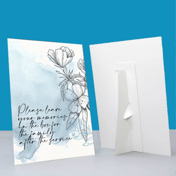 Our strut cards are specifically designed for indoor use, ensuring that they are well-suited for display during memorial services. They provide a touching visual tribute that allows family and friends to reflect on cherished memories and pay their respects in a meaningful way.