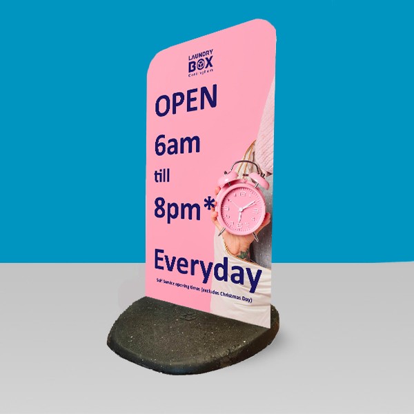 The base of the sign is made from recycled rubber, hence the name Ecoflex. This makes it an environmentally friendly choice, appealing to consumers who prioritise sustainability. By choosing this sign, you are making a positive impact on the environment while effectively promoting your business.